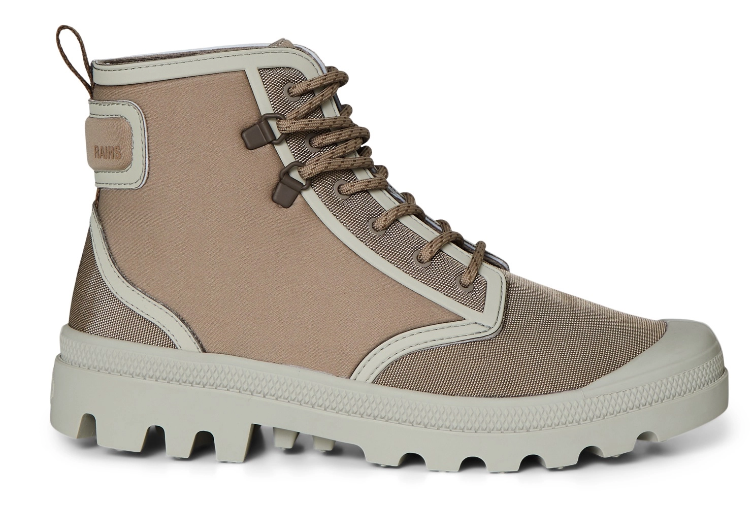 Een moderne klassieker, opnieuw uitgevoerd met de kenmerkende materialen en details van Rains. De welbekende Pampa Rains Boot is een van de twee ontwerpen uit de samenwerking van Rains X Palladium. Pampa Rains Boot is gebouwd op de Pampa Legion-buitenzool. De zool biedt een hoge tractie in alle weersomstandigheden. Terwijl de met EVA gevoerde tussenzool en zachte hielkom de voet goed omsluiten om zo de nodige comfort en ondersteuning te bieden. De iconische buitenzool van Palladium wordt weerspiegeld in het bovenwerk als in kleur afgestemde rubberen TPU-gelaste frames. At last but not least is de look afgewerkt met tweekleurige veters, rubberen haken, oogjes en veteruiteinden. Ook is het logo terug te vinden op de hiel en zijkant.